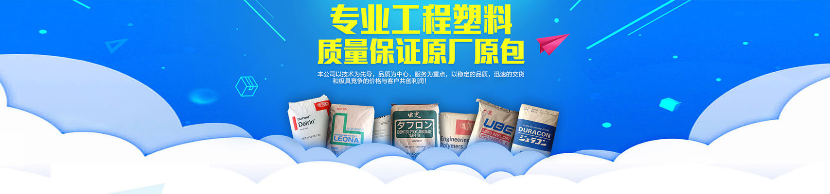 本公�怸�要销�? POM,PA6,PA66,PBT,PP,ABS,PC/ABS,PC.以及代理�l�营各国各种型号塑胶原料. 拥有完整、科学的质量���理体系�?